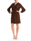 1960S Chocolate Brown Hand Beaded Silk Chiffon Long Sleeve Cocktail Shirt Dress