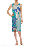 1980S Aquamarine Beaded Silk Cracked Glacier Ice Cocktail Dress