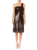 1990S KRIZIA Metallic Silver Polyester Chiffon Asymmetrically Draped & Bias Cocktail Dress