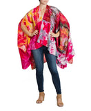 This Cocoon is made from our deconstructed Silk linings of the Kimonos we use in our Japanese silk collection, as we are a sustanable company we waste nothing, Each piece is one of kind due to the Ice Dying Procedure which takes a week to process. The Cocoon can be worn 2 different ways, right side up or upside down, Hence why we call it the Upside Down Cocoon. This silk fabric is light weight, soft and luxurious.