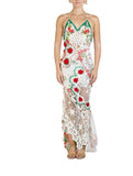 MORPHEW COLLECTION Red & White Floral Cotton Hand-Crochet 40’S Hanky Gown