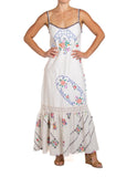 MORPHEW COLLECTION White & Blue Hand Embroidered Fabric From France Dress