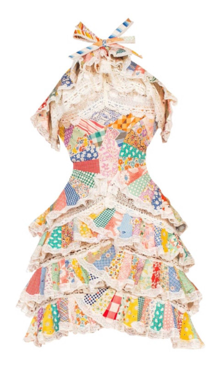 White & Multicolor Patchwork Cotton and Lace Mini Dress