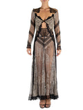 Morphew Atelier Black & Silver Antique Lace Sleeved Gown With Quartz Crystals