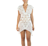 White Cotton Crochet Lace Mini Dress