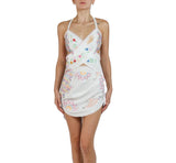 White & Multicolor Cotton Linen Crochet Lace Mini Dress With Embroidered
