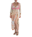 White & Pink Cotton Crochet Lace Long Dress With Bell Sleeves XL