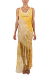 MORPHEW COLLECTION Earth-Tone & Yellow Cotton Crochet Lace Long Body-Con Dress