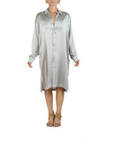 Silver Silk Charmeuse Oversized Button Down Shirt Dress