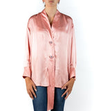 2010S ALTA MODA DOLCE & GABBANA Bubble Gum Pink Silk Satin Blouse With Giant Crystal Buttons