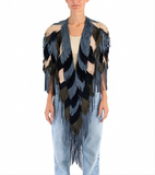 Morphew Collection Indigo Suede Fringe Feather Leather Long Cape