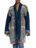 MORPHEW COLLECTION Navy Blue Multi African Cotton & Hand-Woven Guatemalan Ikat Duster