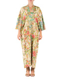 MORPHEW COLLECTION Cream Floral Print Japanese Kimono Silk Kaftan
