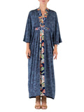 MORPHEW COLLECTION Dusty Blue Floral & Uchiwa Print Japanese Kimono Silk Kaftan