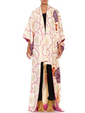 1950S White Pink & Purple Silk Hand Painted Embroidered Shibori Kimono