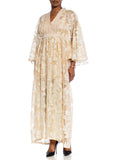 MORPHEW COLLECTION Beige Poly/Nylon Tropical Foliage Lace Kaftan