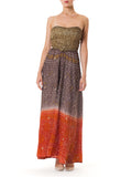 MORPHEW COLLECTION Hand Dyed Shibori Silk & Metalilc Gold Indian Embroidered Strapless Gown