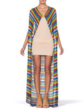 Multicolor Striped Knit Duster Top With Gold Parrot Clasp