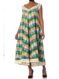 MORPHEW COLLECTION Victorian Handmade Lace & Hand-Woven Cotton Ikat Trapeze Dress