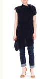 MORPHEW COLLECTION Black Recycled Silk Deconstructed Oversize Top With Victorian Lace & Beading