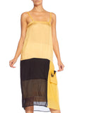 1920'S Yellow & Black Silk Chiffon Slip Dress Meant To Be Worn Under An Evening Top