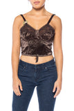1940S ARMANDE PARIS Chocolate Brown Satin, Lace Deadstock Long Line Bra