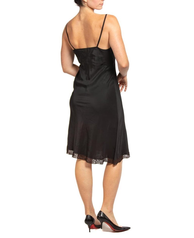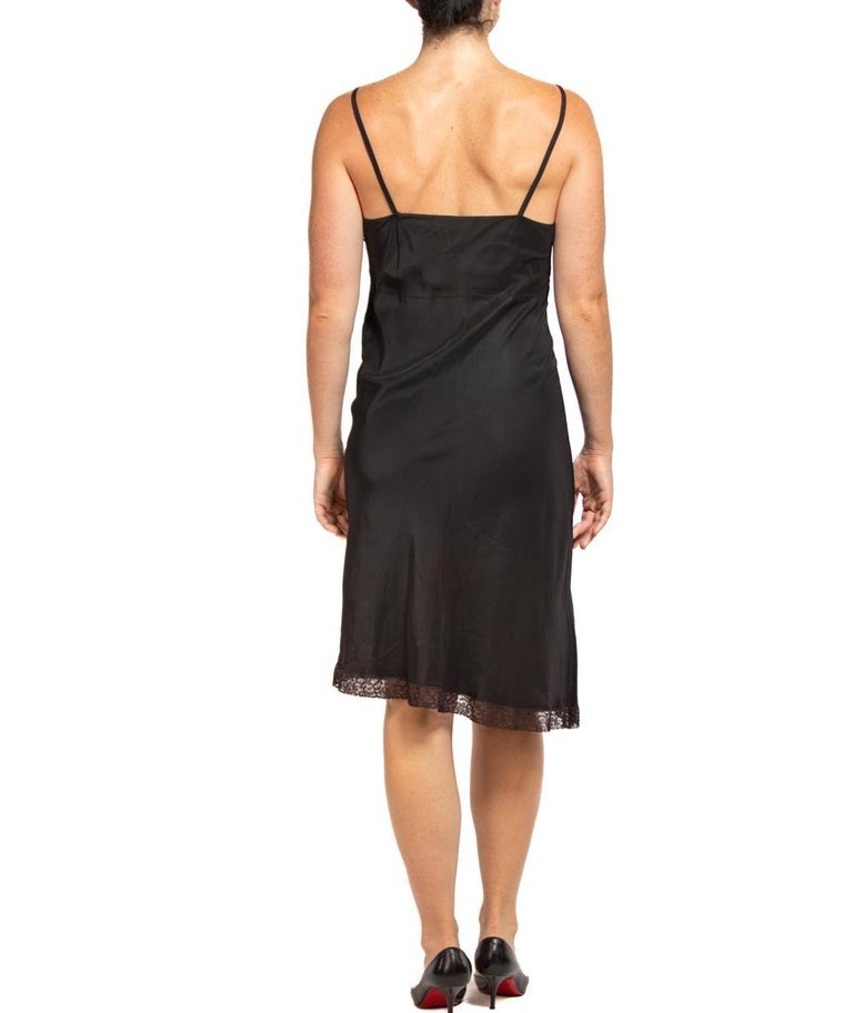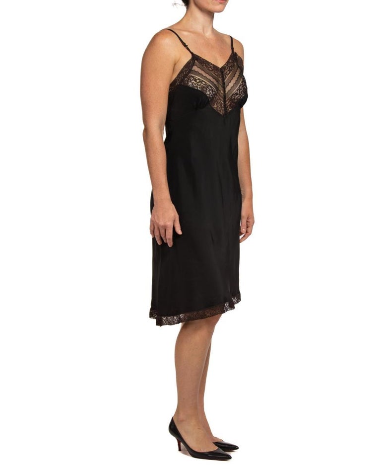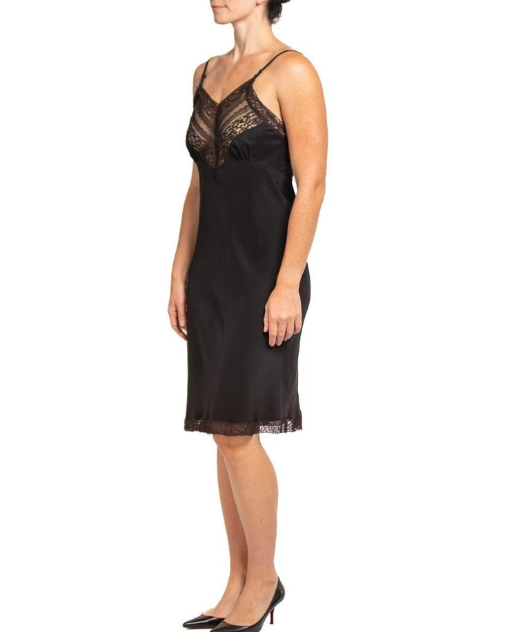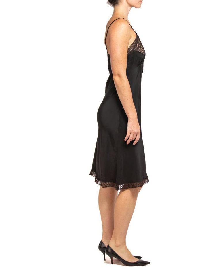 1950S Black Bias Cut Rayon With Beautiful Lace Trim Negligee