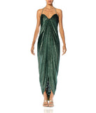 1970S OSCAR DE LA RENTA Emerald Green & Silver Silk Lurex Metallic Devoré Velvet Gown With Crystal Straps Internal Bustier
