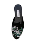 1990S OSCAR DE LA RENTA Black & White Beaded Floral Design Slip On Flat Shoes Dead Stock