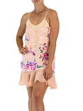1990S Pink Multi Floral Polyester Lace Slip Dress