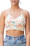 White, Peach & Blue Floral Bustier With Adjustable Straps