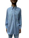 1940S Light Blue Rayon Blend Long Sleeve Shiny Men's Shirt