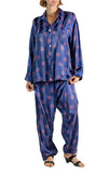 1940S Navy Blue Cold Rayon Men's Satin Stripe & Art Deco Geometric Pajamas