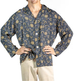 1940S Navy Blue & Yellow Rayon Mens Pajamas