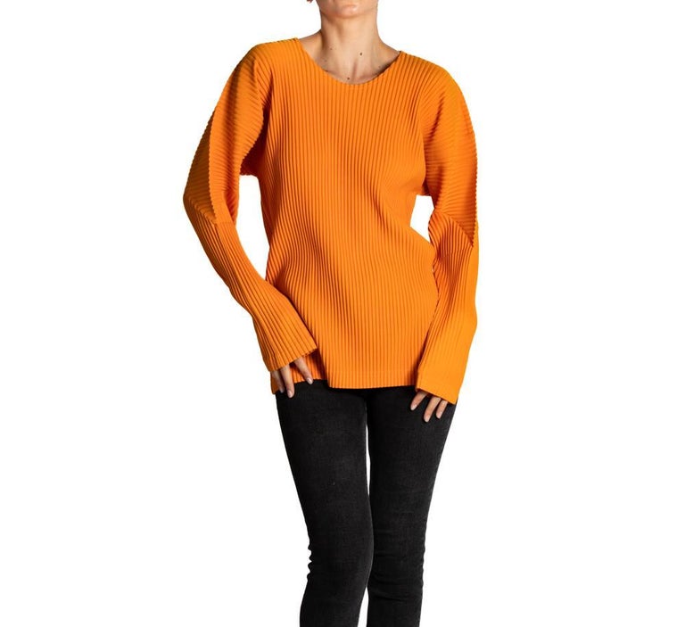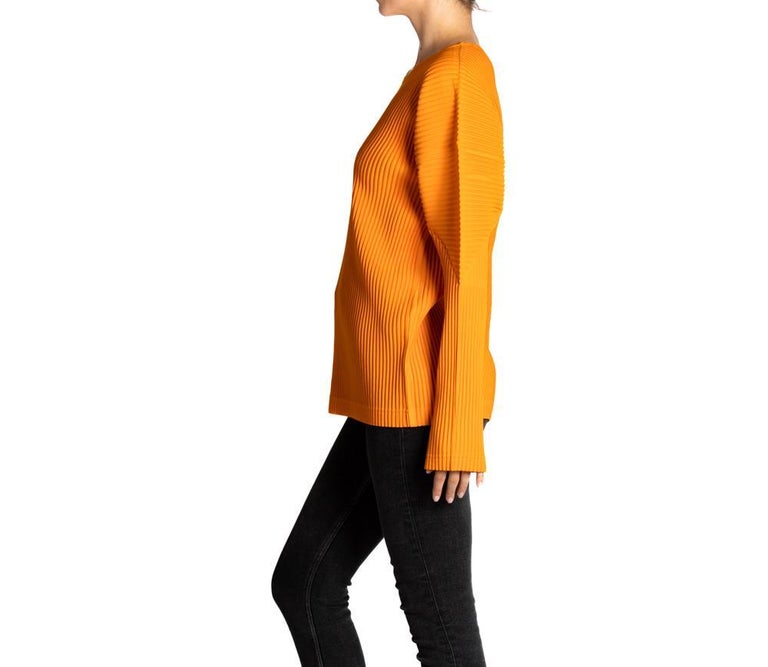 1990S HOMME PLISSE BY ISSEY MIYAKE Orange Polyester Pleated Mens Shirt