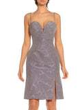 1990S THIERRY MUGLER Grey Blue Cotton Blend Printed Cocktail Dress