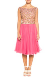 1960S Pink & Gold Silk Chiffon Beaded Swing Skirt Party Cocktail Dress
