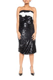 1990S GIORGIO ARMANI Black & White Silk Chiffon Fully Beaded Bias Strapless Cocktail Dress