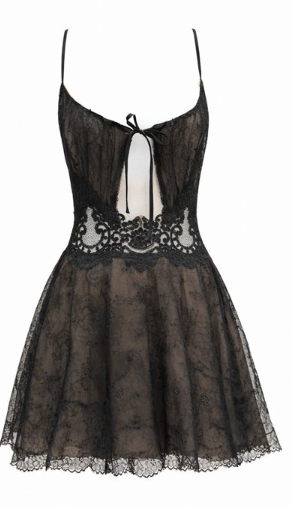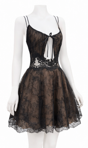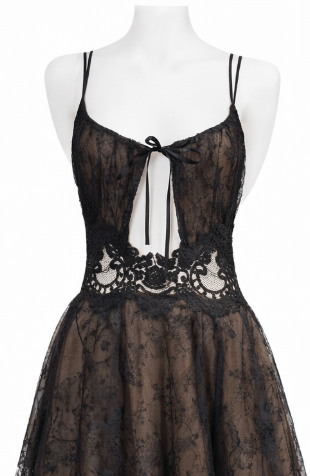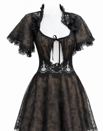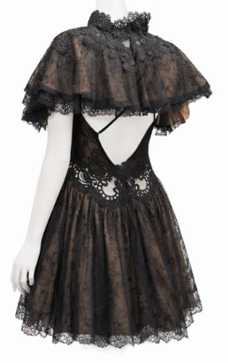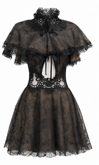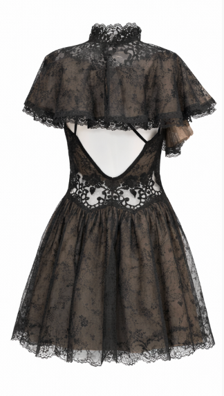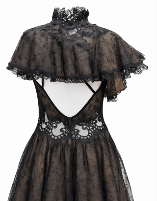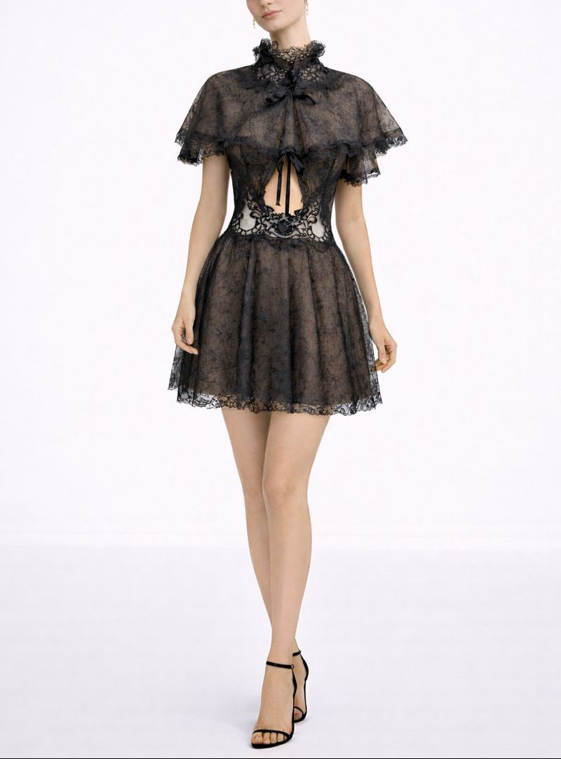 Black & Copper Chantilly Lace Dress with Adjustable Straps & Cape