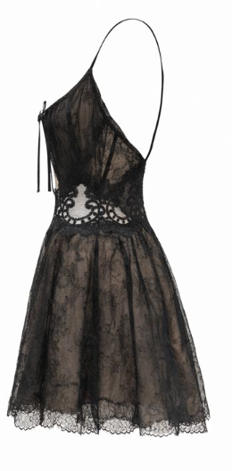 MORPHEW ATELIER Black & Copper Chantilly Lace Dress with Adjustable Straps & Cape
