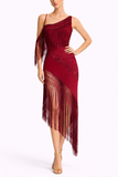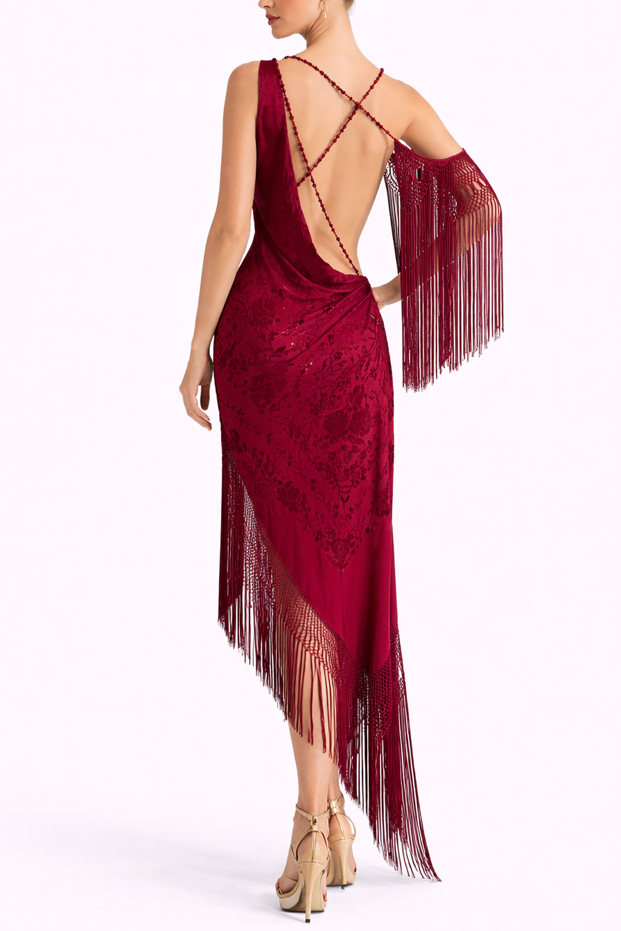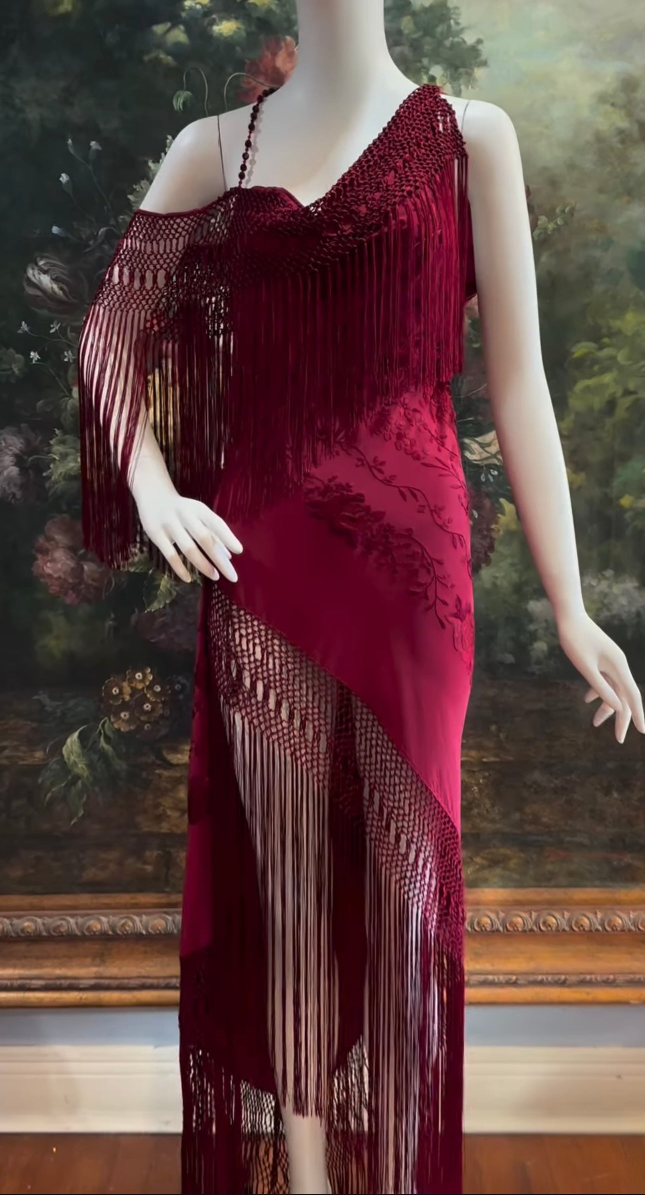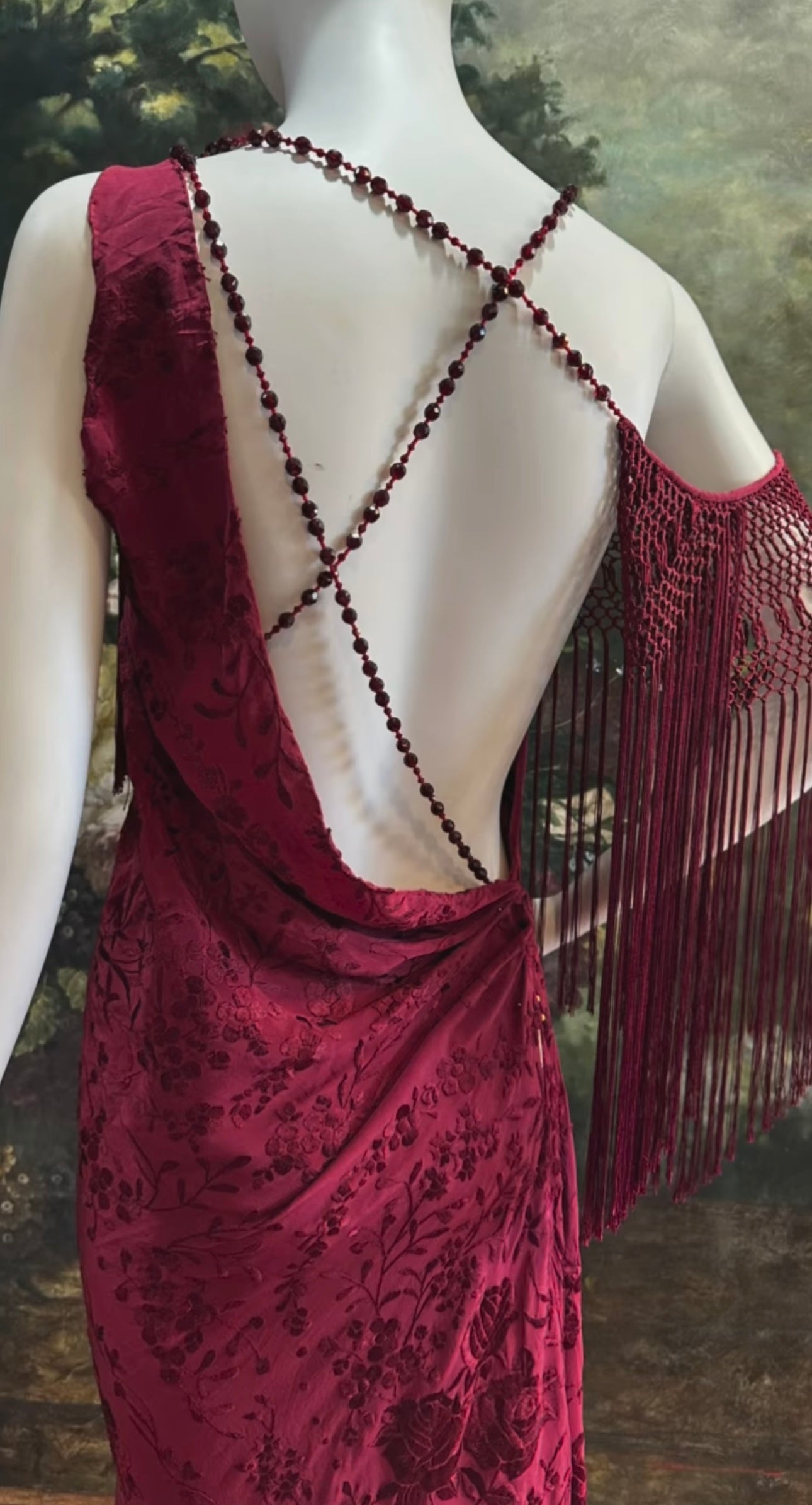 Burgundy Crochet Fringe Dress with Beaded Straps