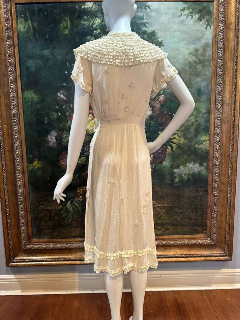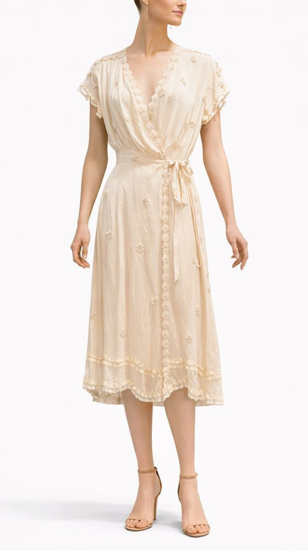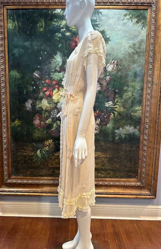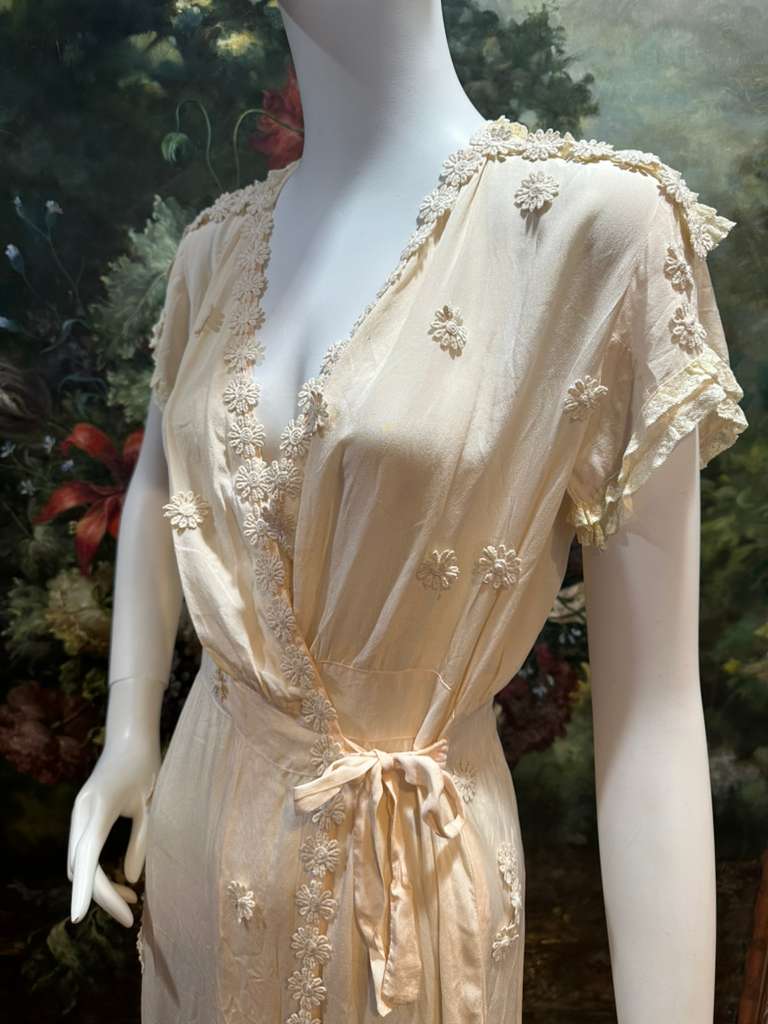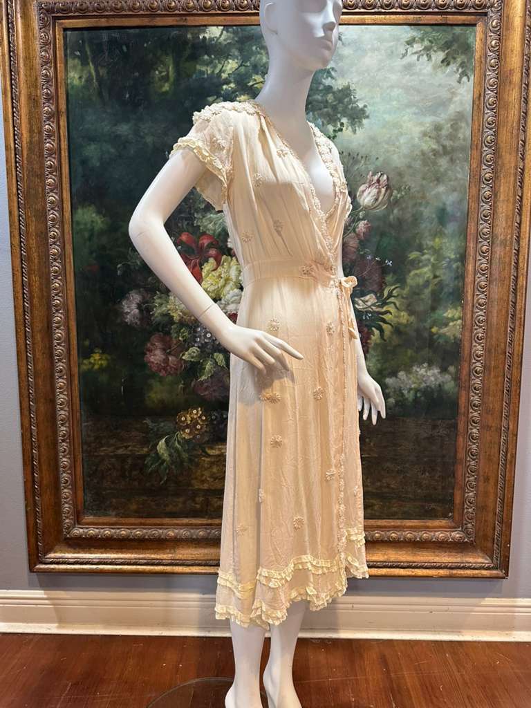 Cream Silk Antique Lace & 1930s Dress Wrap Dress