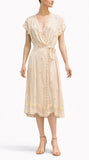 MORPHEW COLLECTION Cream Silk Antique Lace & 1930s Dress Wrap Dress