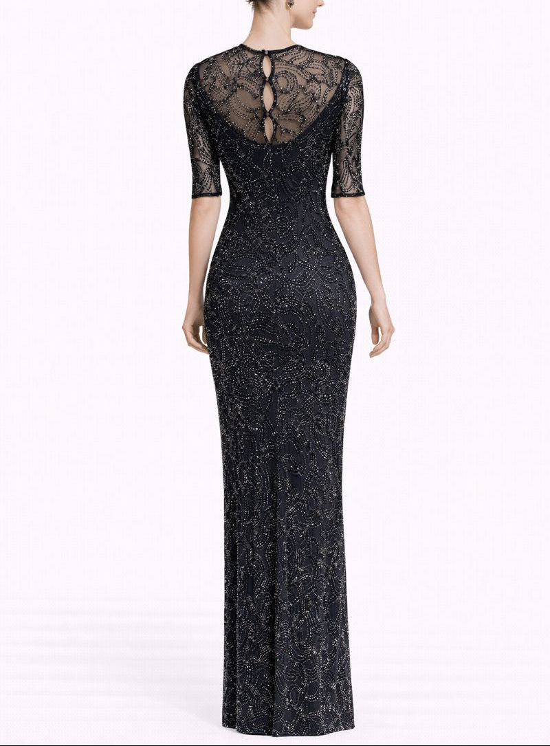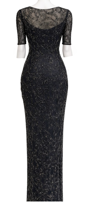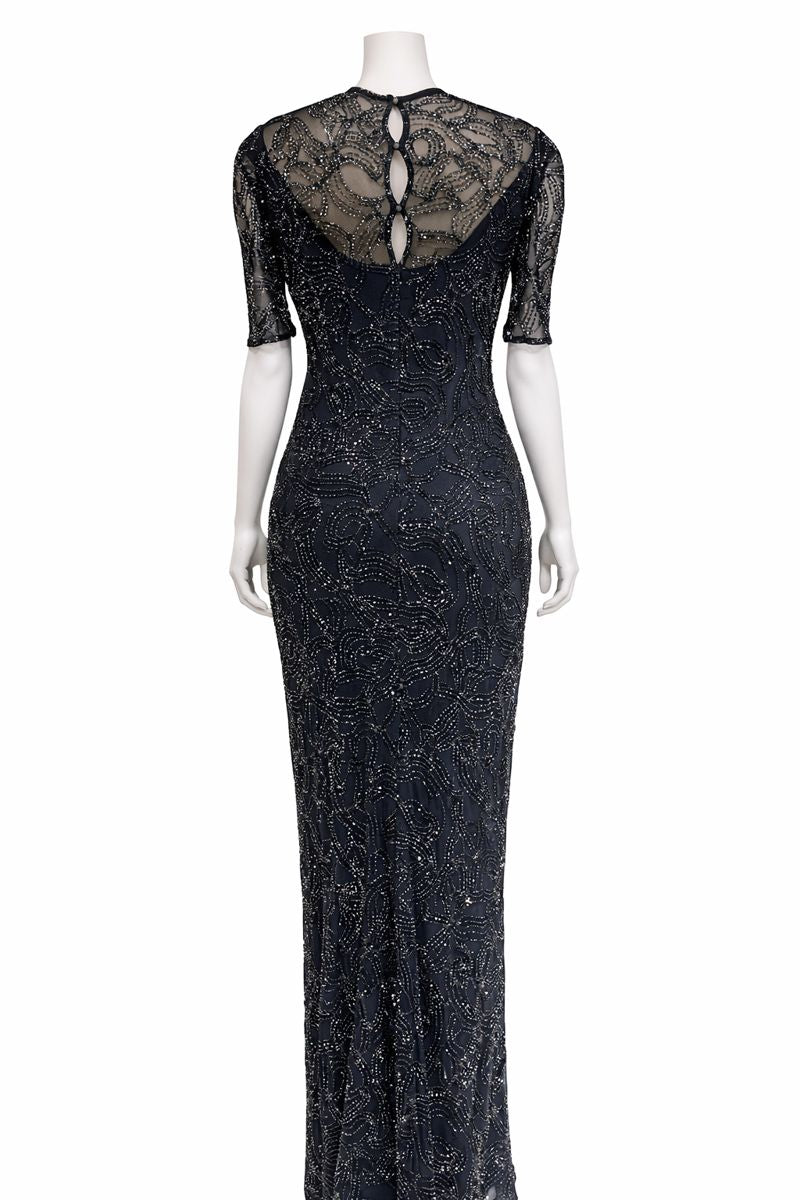 MORPHEW COLLECTION Grey Beaded Rayon & Silk Net Silk Lined Gown