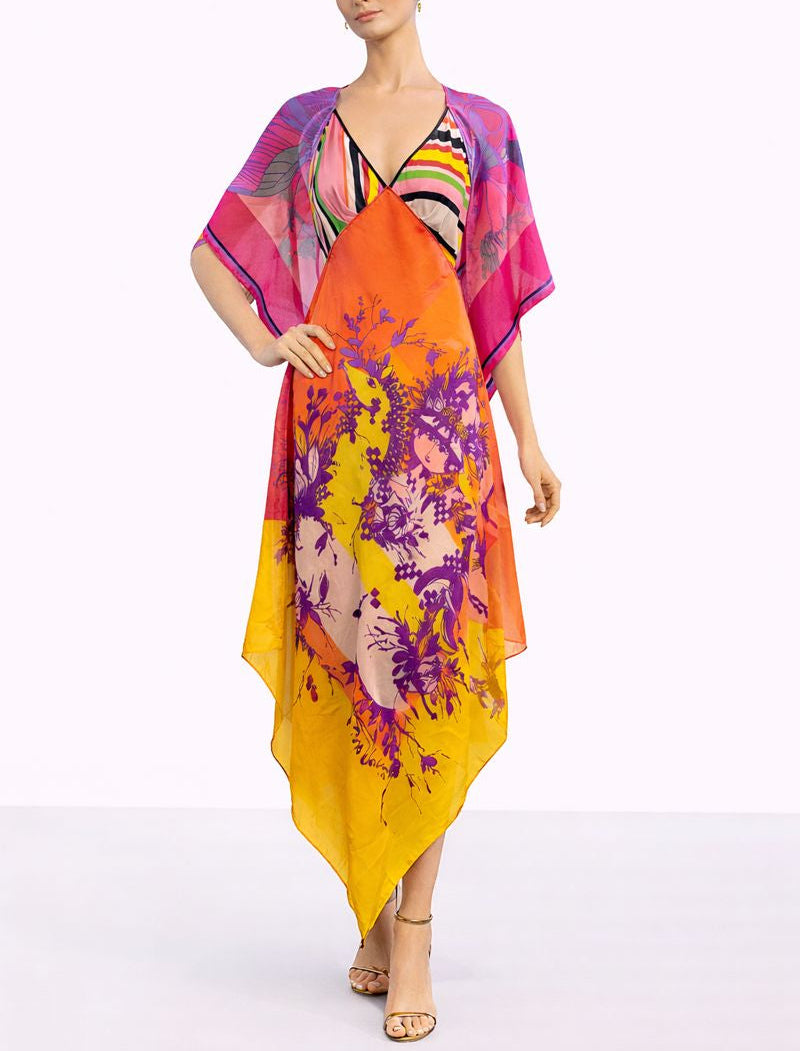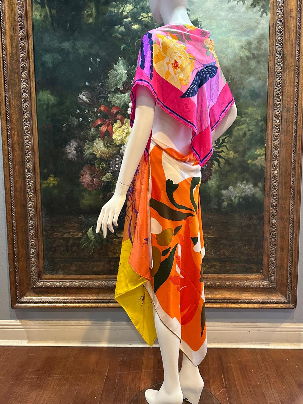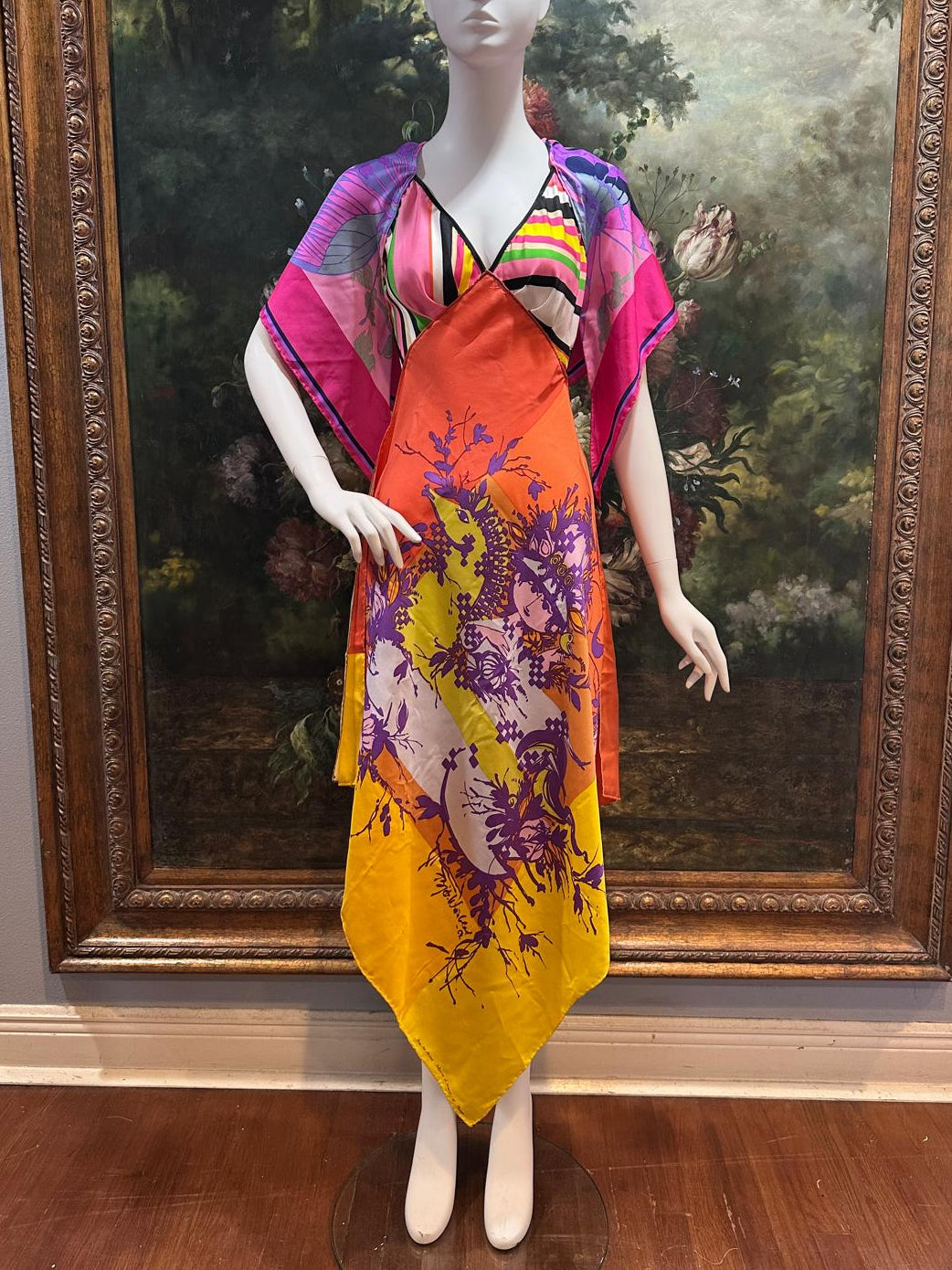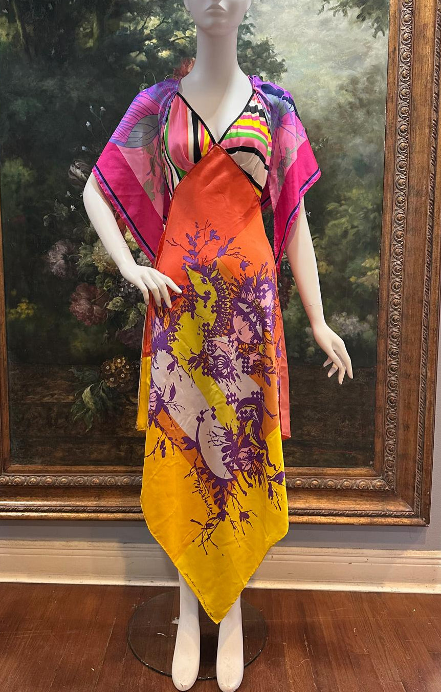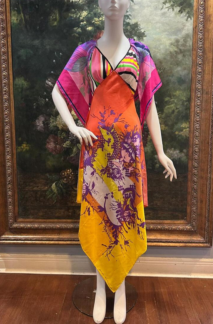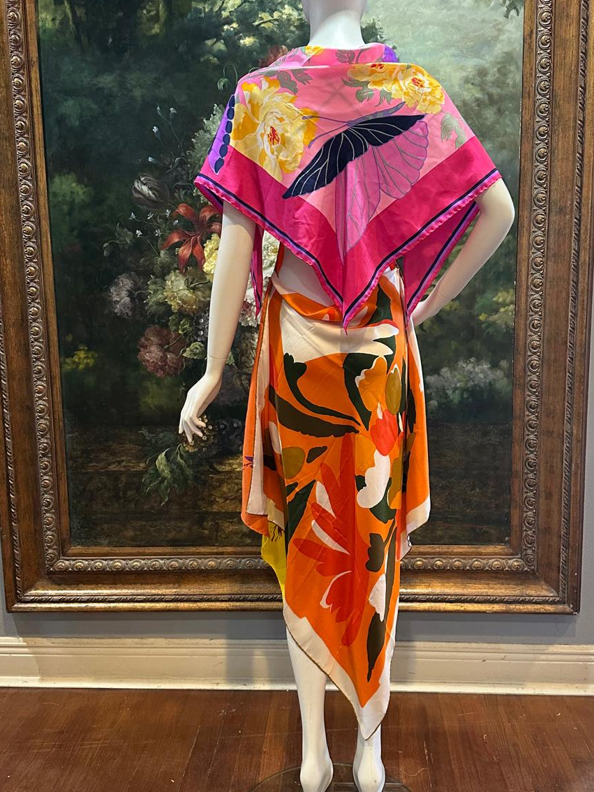 MORPHEW COLLECTION Orange Silk 1960s 3 scarf Dress