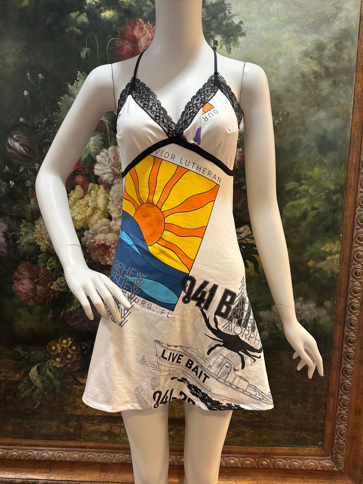 MORPHEW COLLECTION White Screenprinted Mini Cocktail Dress