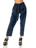 1990S Balenciaga Navy Blue Rayon Pants With Fabric Belt