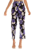 1990S Black & Purple Polyester Pop Art Floral Print Pants
