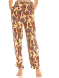 2000S RALPH LAUREN Butter Yellow Blue & Red Rayon Paisley Print Wide Leg Pants