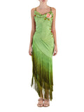 MORPHEW ATELIER Green Hand Embroidered Silk Bias Piano Shawl Gown With Ombré Fringe